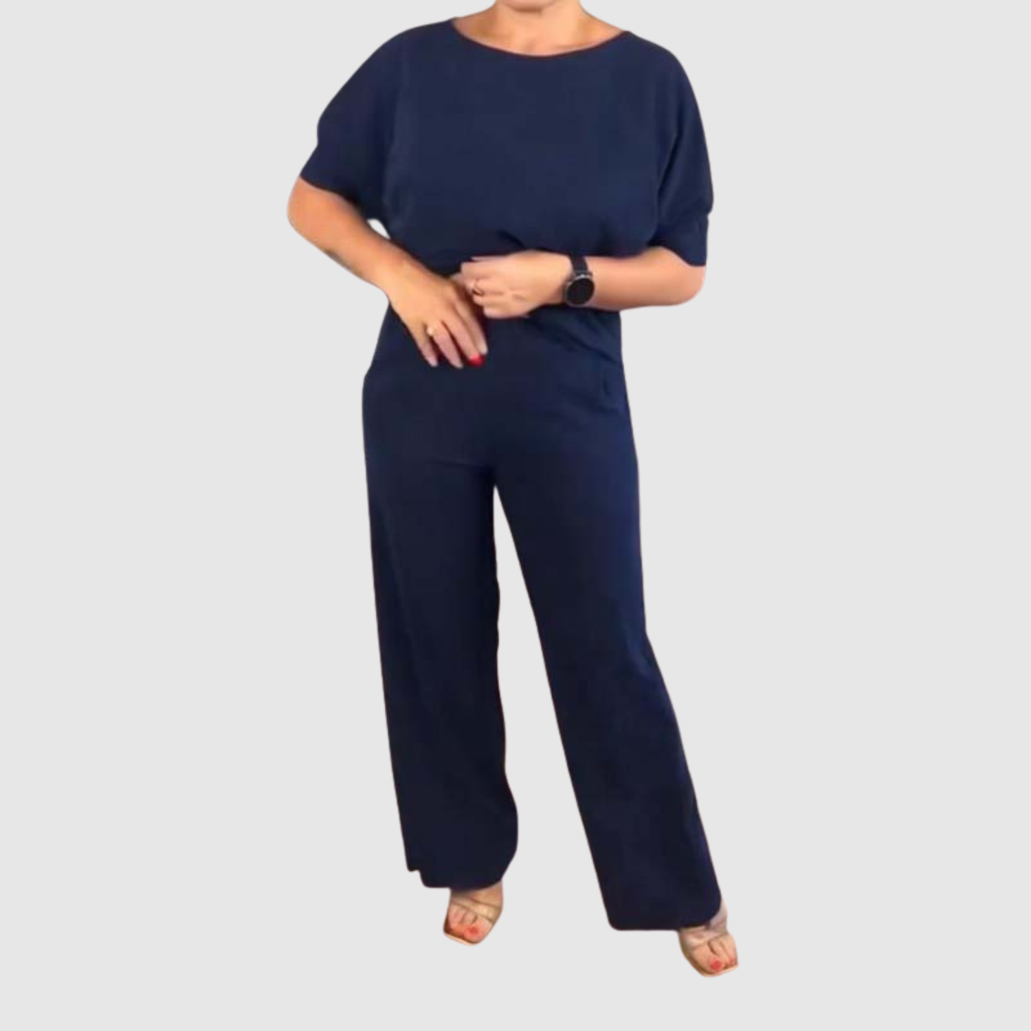Ten elegancki zestaw łączy lekką koszulę z szerokimi spodniami, tworząc stylowy i kobiecy wygląd. Idealny do pracy, na kolacje na świeżym powietrzu i relaksujące dni ze stylem.