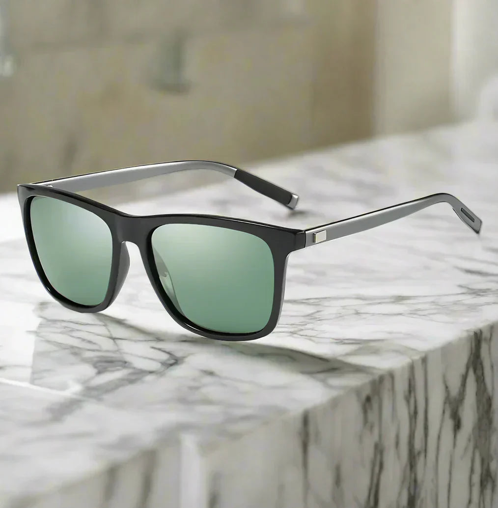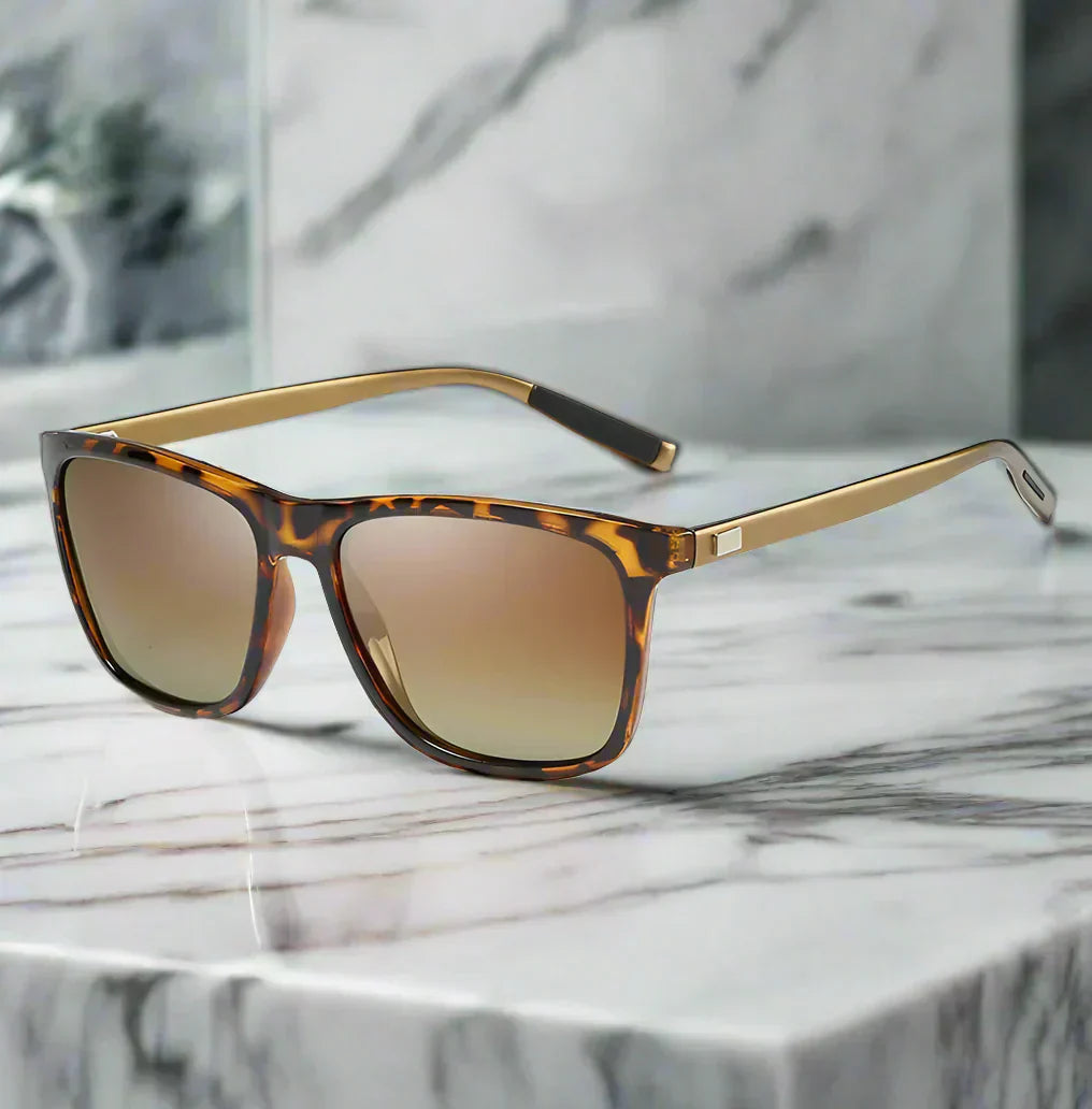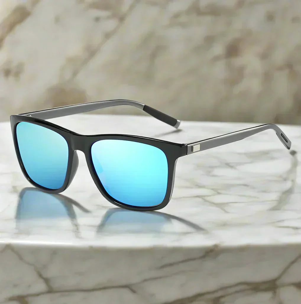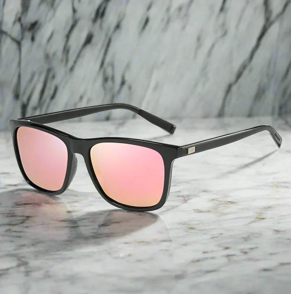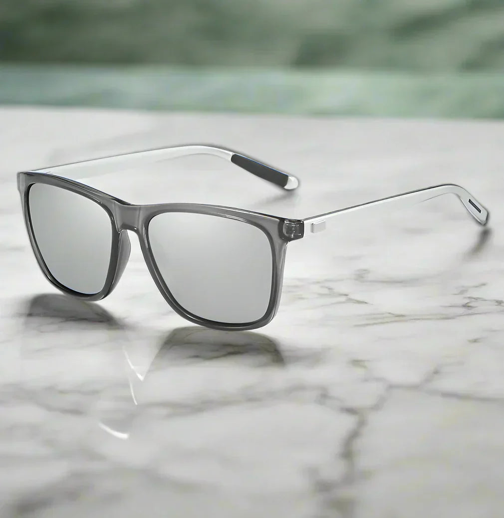 Para eleganckich okularów przeciwsłonecznych z lustrzanymi szkłami, które łączą ponadczasowy styl z nowoczesnym komfortem. Lekkie oprawki zapewniają wygodne noszenie, podczas gdy przyciemnione soczewki oferują skuteczną ochronę przed promieniami słonecznymi. Idealne do codziennego noszenia i podróżowania.