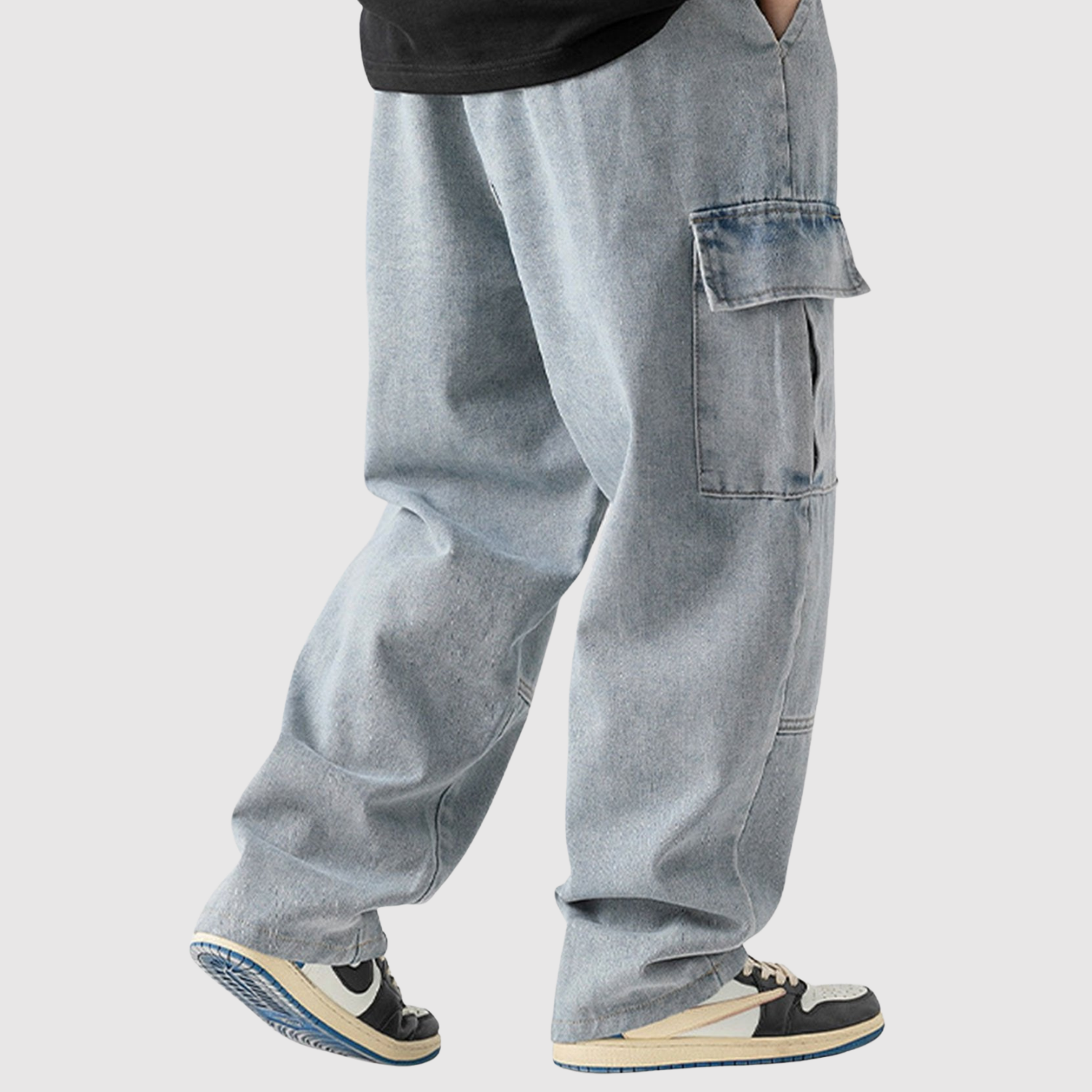 Te dżinsy cargo łączą praktyczne detale z nowoczesnym stylem ulicznym. Elastyczny pas i proste nogawki zapewniają maksymalny komfort, podczas gdy obszerne kieszenie dodają funkcjonalności i nowoczesnego wyglądu.
