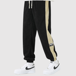 Te spodnie sportowe mają luźny krój, połączony z jasnymi kontrastowymi paskami po bokach, co nadaje dynamiczny i stylowy wygląd. Idealne do treningów i na co dzień.