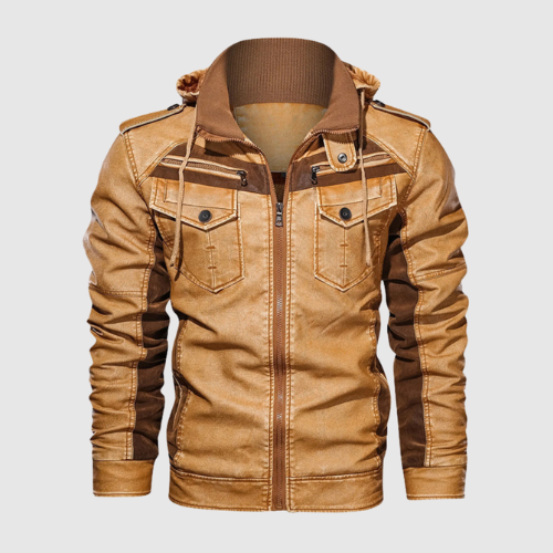 Marek - Męska skórzana kurtka Titan z odpinanym kapturem