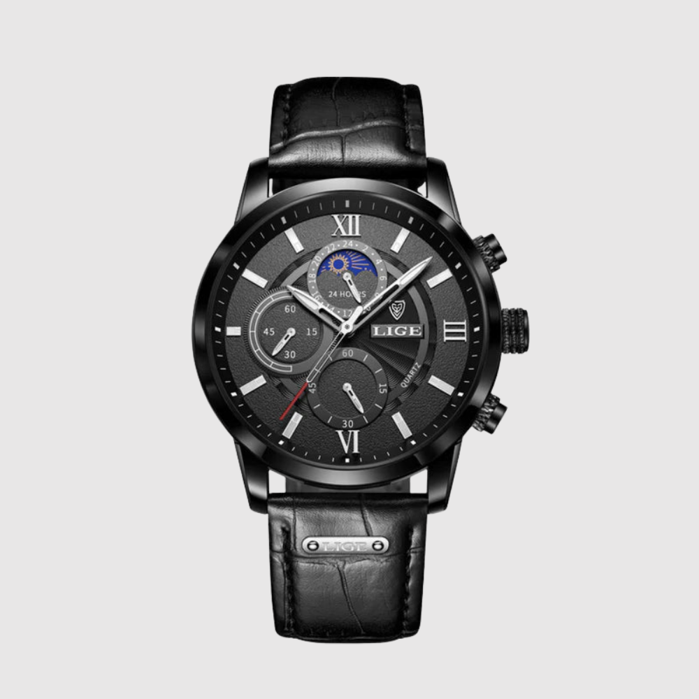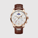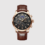 Ten męski zegarek łączy klasyczną elegancję z nowoczesną funkcjonalnością. Czytelna tarcza z chronografem oraz skórzany pasek sprawiają, że doskonale sprawdzi się zarówno na co dzień, jak i przy bardziej formalnych stylizacjach.