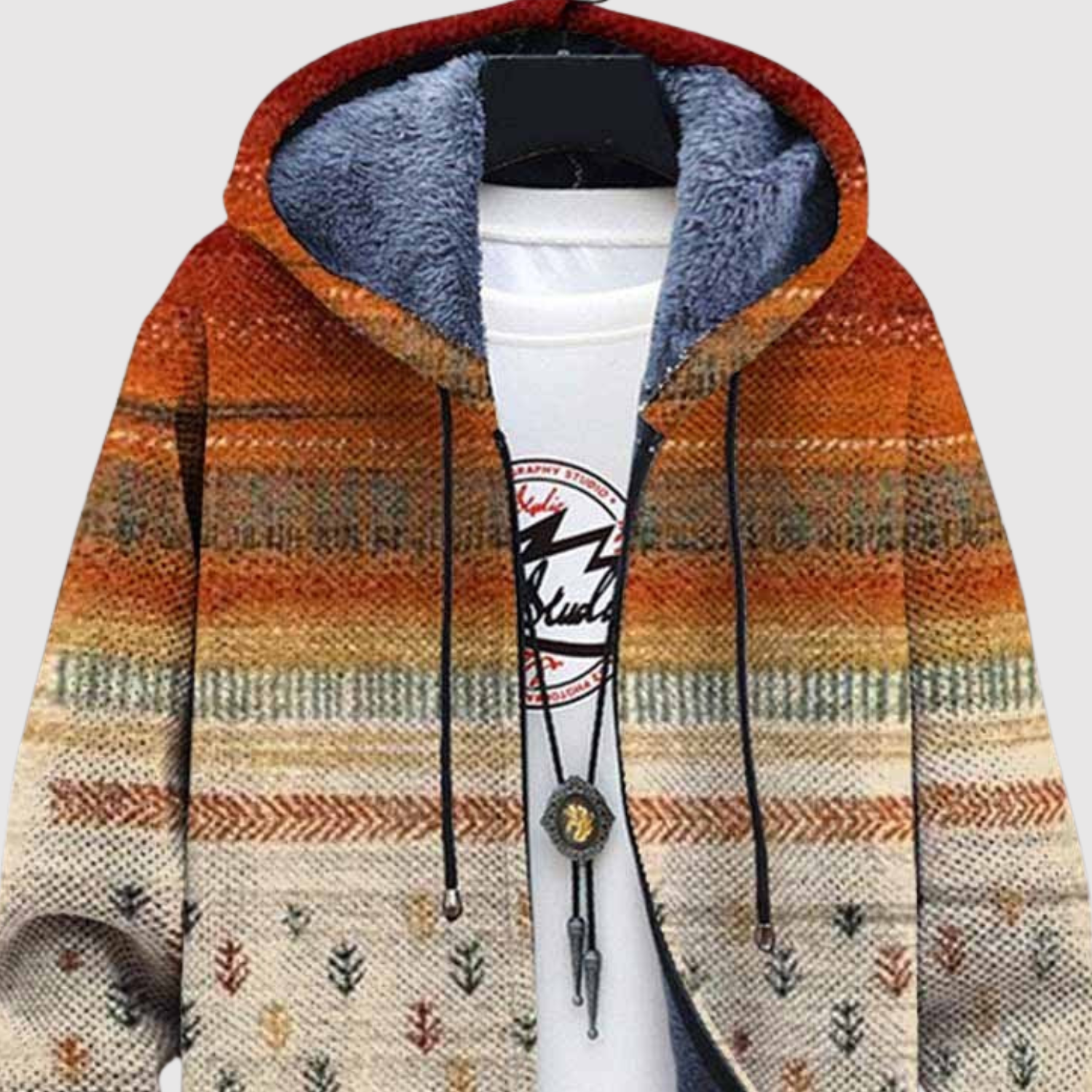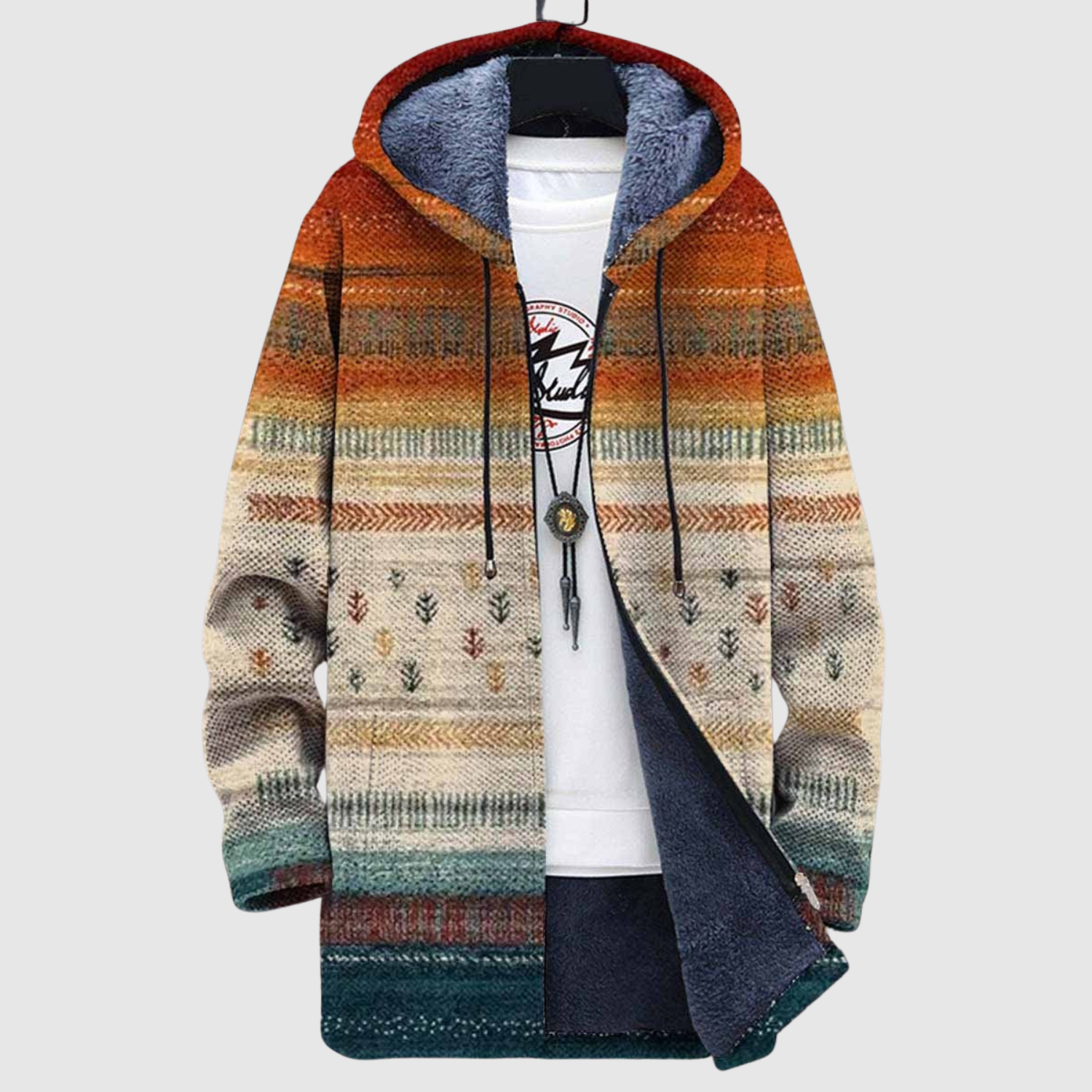 Ta bluza łączy ciepłe odcienie i delikatny wzór, który podkreśla spokojny i nowoczesny styl. Miękka podszewka zapewnia komfort w chłodne dni, podczas gdy kolorowy design nadaje charakteru Twojemu ubraniu.