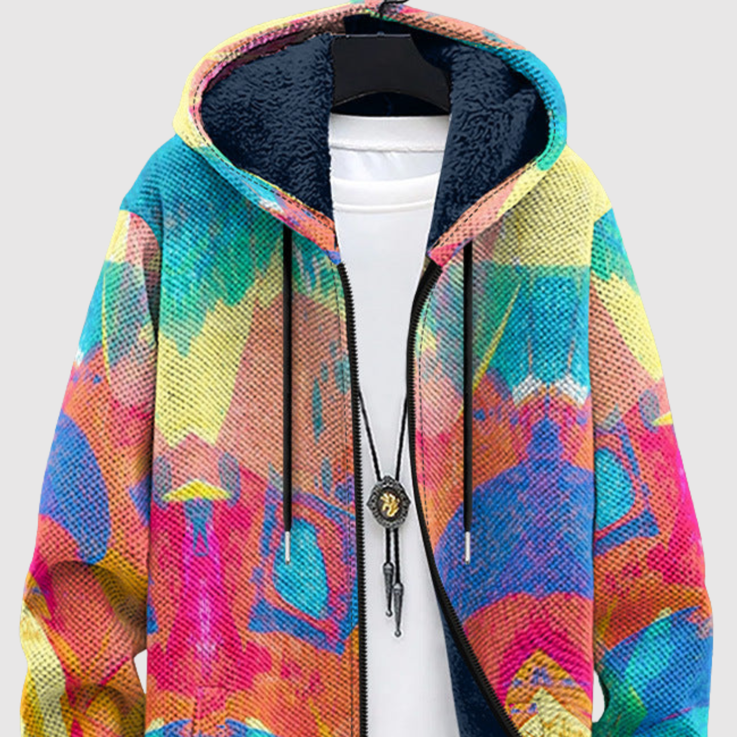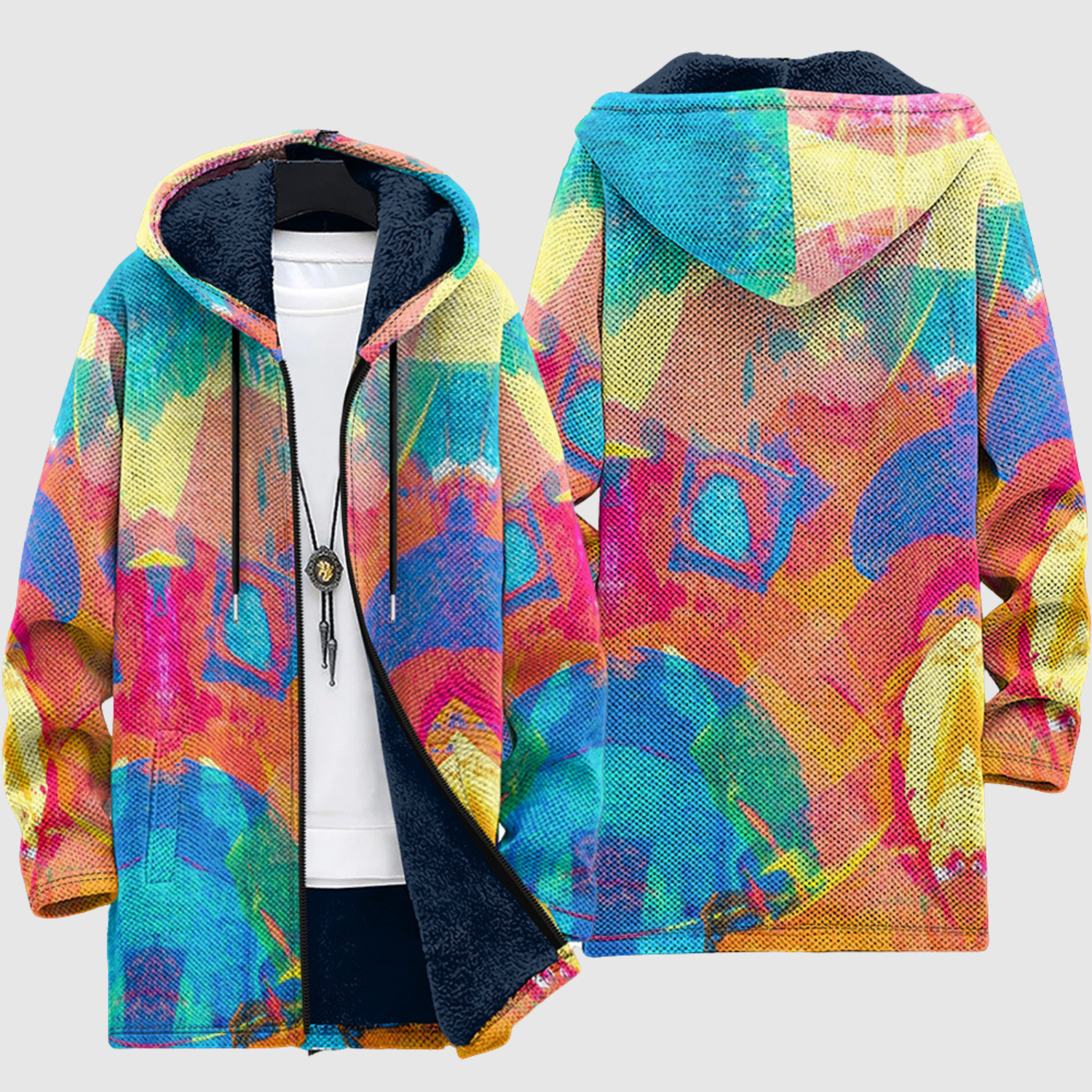 Ta bluza łączy delikatne przejścia i mocne tonacje kolorystyczne w nowoczesnym, abstrakcyjnym designie. Jest idealna dla tych, którzy kochają kreatywność i komfort – atrakcyjna na co dzień i w czasie wolnym.