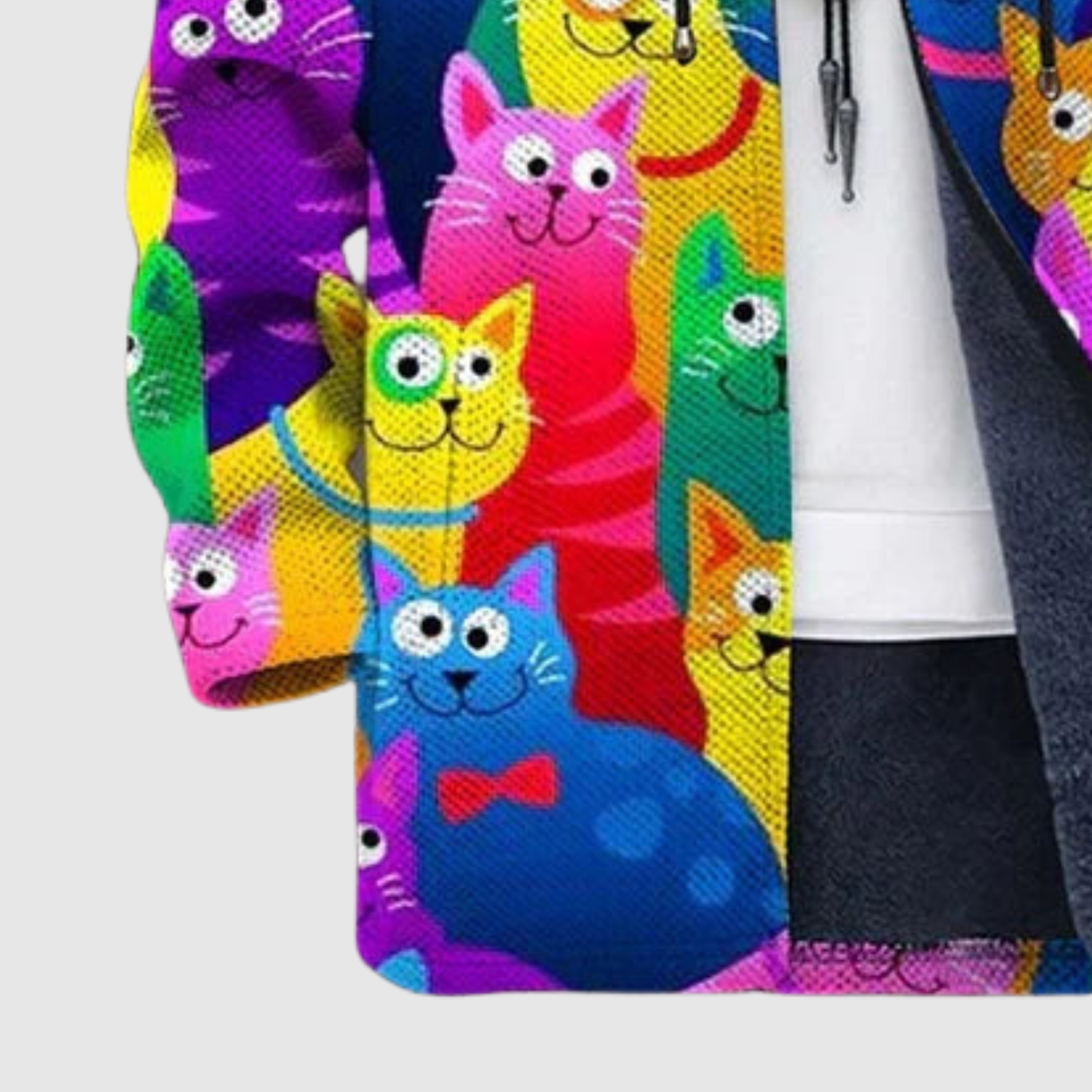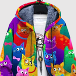 Ta bluza wprowadza kolor i humor do codziennego życia dzięki swojemu kolorowemu motywowi kotów. Miękka, ciepła podszewka zapewnia maksymalny komfort, podczas gdy zabawny design nadaje unikalny i wesoły wygląd.