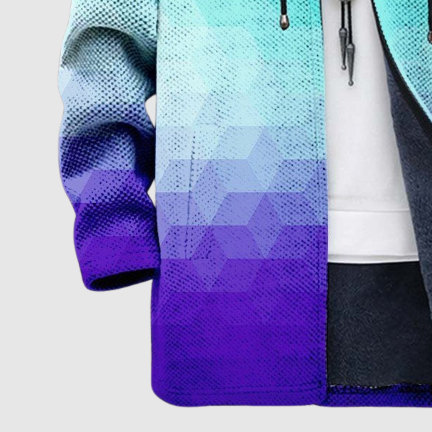 Ta bluza łączy delikatny przejrzysty gradient od turkusowego do fioletowego, co tworzy harmonijny i nowoczesny wygląd. Jest idealna do codziennego noszenia – jednocześnie stylowa i wygodna z nutą kreatywności.