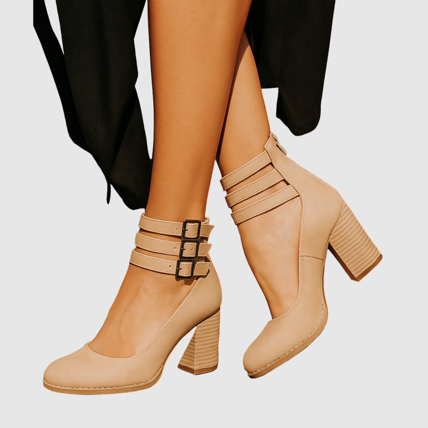 Te botki łączą klasyczną sylwetkę z nowoczesnymi detalami, takimi jak podwójne klamry i blokowy obcas. Paski zapewniają stabilność i stylowy wygląd, podczas gdy średni obcas sprawia, że są idealne do całodziennych noszenia - zarówno na co dzień, jak i elegancko.
