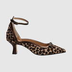 Te czółenka w leoparda łączą odważną aurę z kobiecą elegancją. Cienki pasek wokół kostki zapewnia stabilność, podczas gdy niski obcas gwarantuje komfort przez cały dzień. Dyskretna kokardka z przodu dopełnia elegancki wygląd.