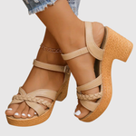 Te sandały łączą nowoczesny wygląd z wygodnym komfortem. Pleciony pasek z przodu dodaje unikalnego akcentu, podczas gdy solidna platforma i korkowa podeszwa zapewniają lekkość i letni nastrój. Idealne do codziennego noszenia i wakacyjnych dni.
