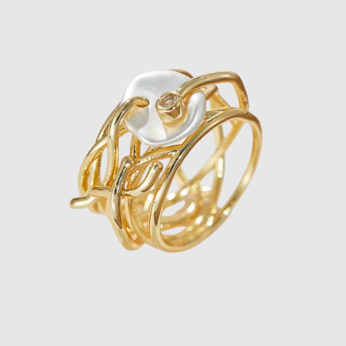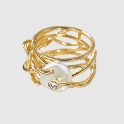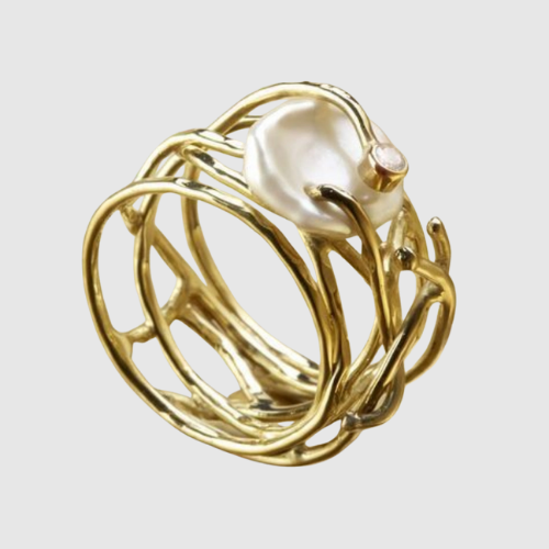 Valérie – Złoty pierścionek z perłą i artystycznym designem